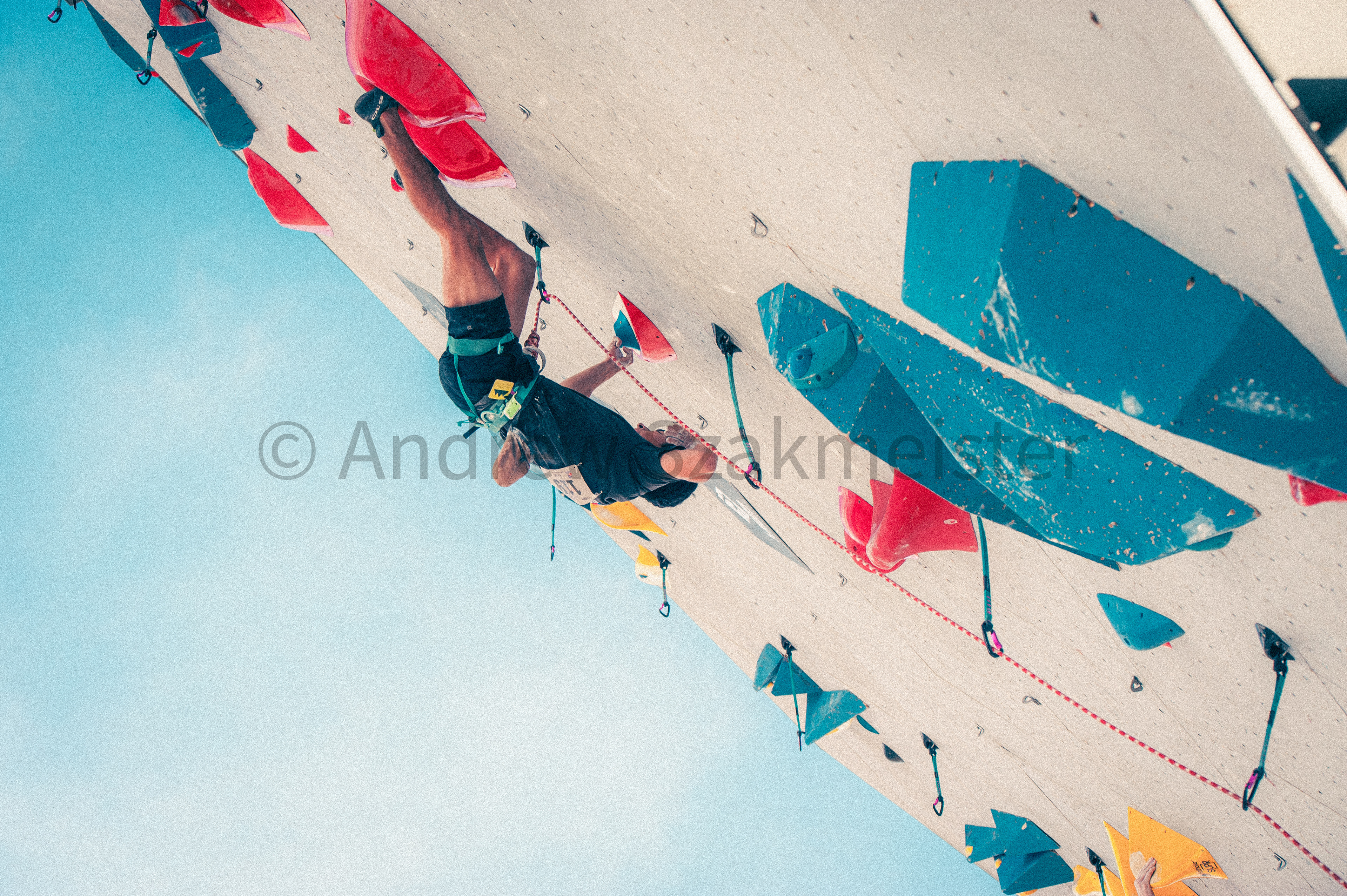 This project was made possible and exists entirely because of USA climbing and their willingness to gift me with a media pass to this event. Beyond that, my mission was exclusively to capture the effort and mental state of the climbers on the wall. Sometimes that meant sacrificing the direct ability to see a face so that the positioning of the climber's body told the story, and other times the action and effort on the climber's face was the main objective. Included with this collection is one purely artistic photo I captured of eventual winner Sergey Lakhno's shoes which I found striking with their visible signs of use and trust.